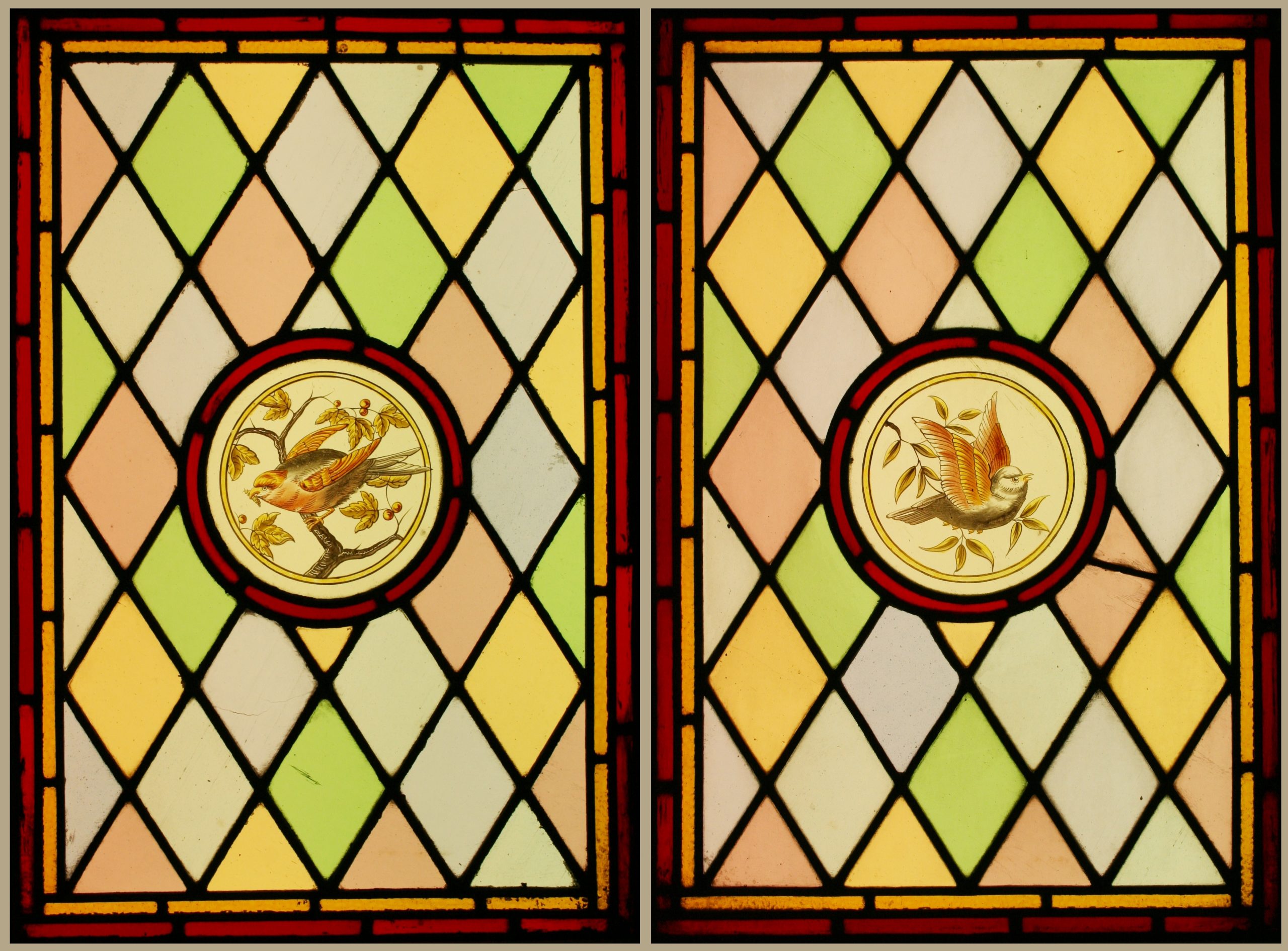Ref: Ed346 – 2 Antique Stained Glass Windows – Bird Windows
