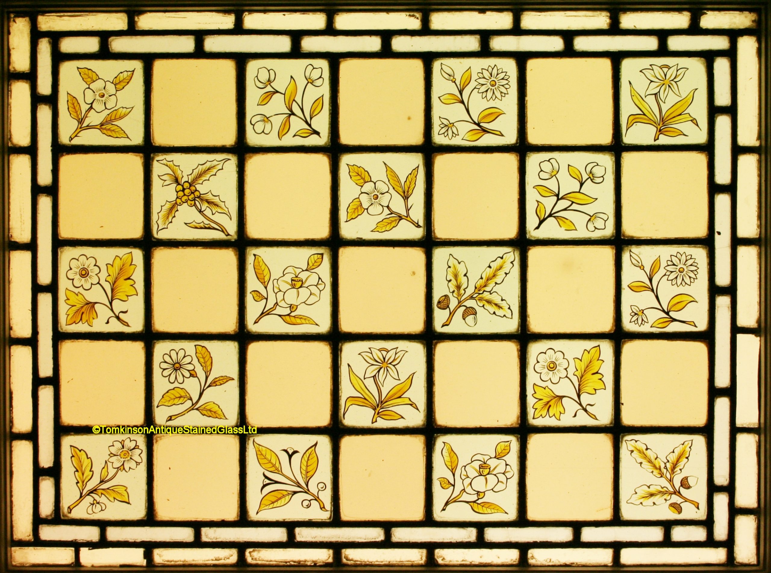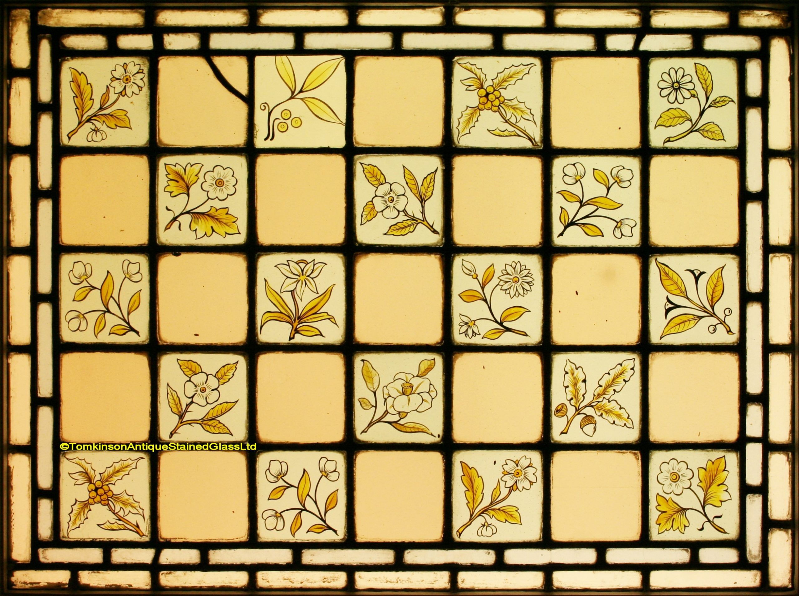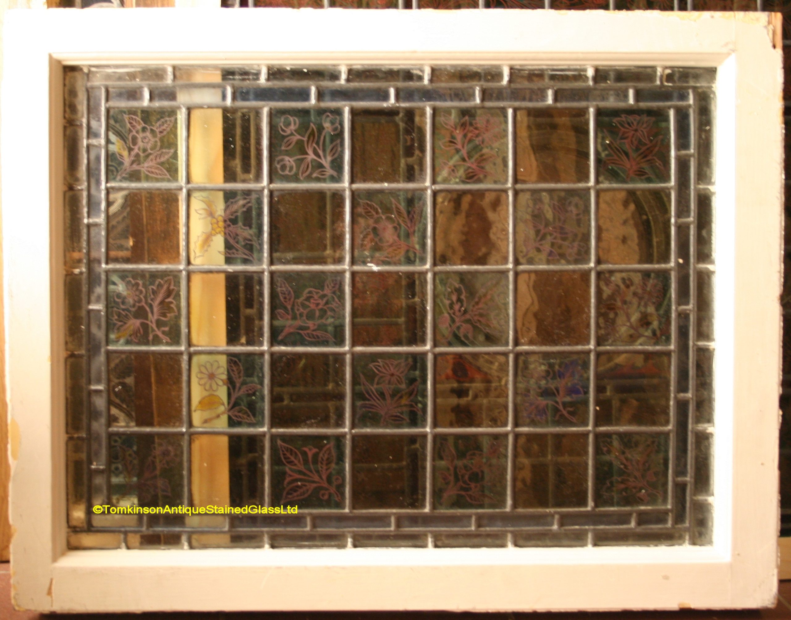 Ref: Ed360 – 2 Antique Stained Glass Windows – Flowers & Foliage