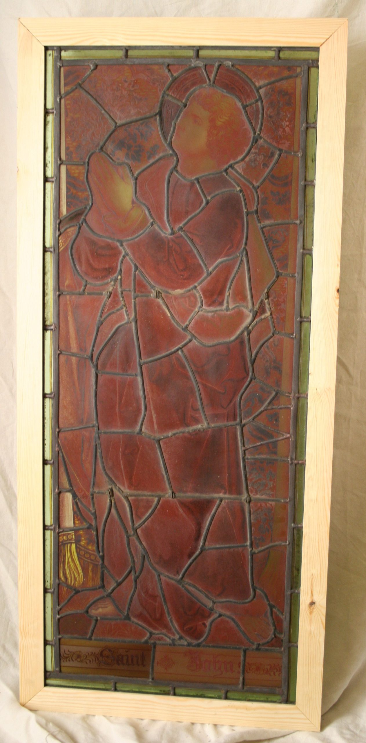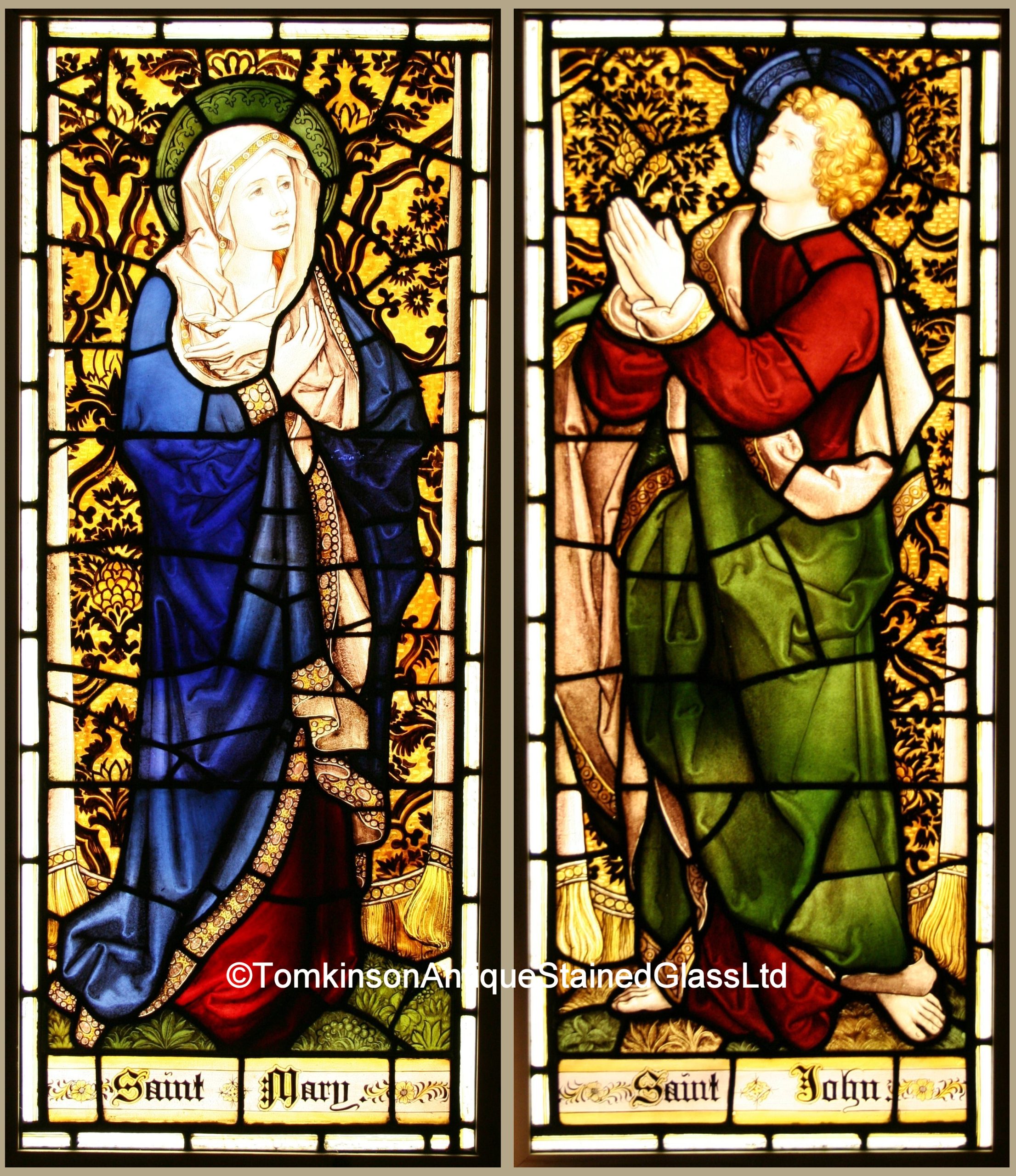 Ref: Rel268 – 2 Antique Religious Church Stained Glass Windows – “St Mary & St John”