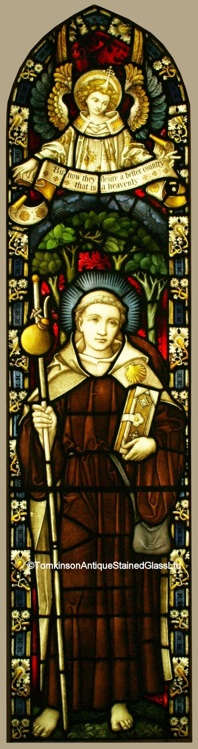 Ref: Rel306 – Antique Religious Church Stained Glass Window – “St James the Greater”