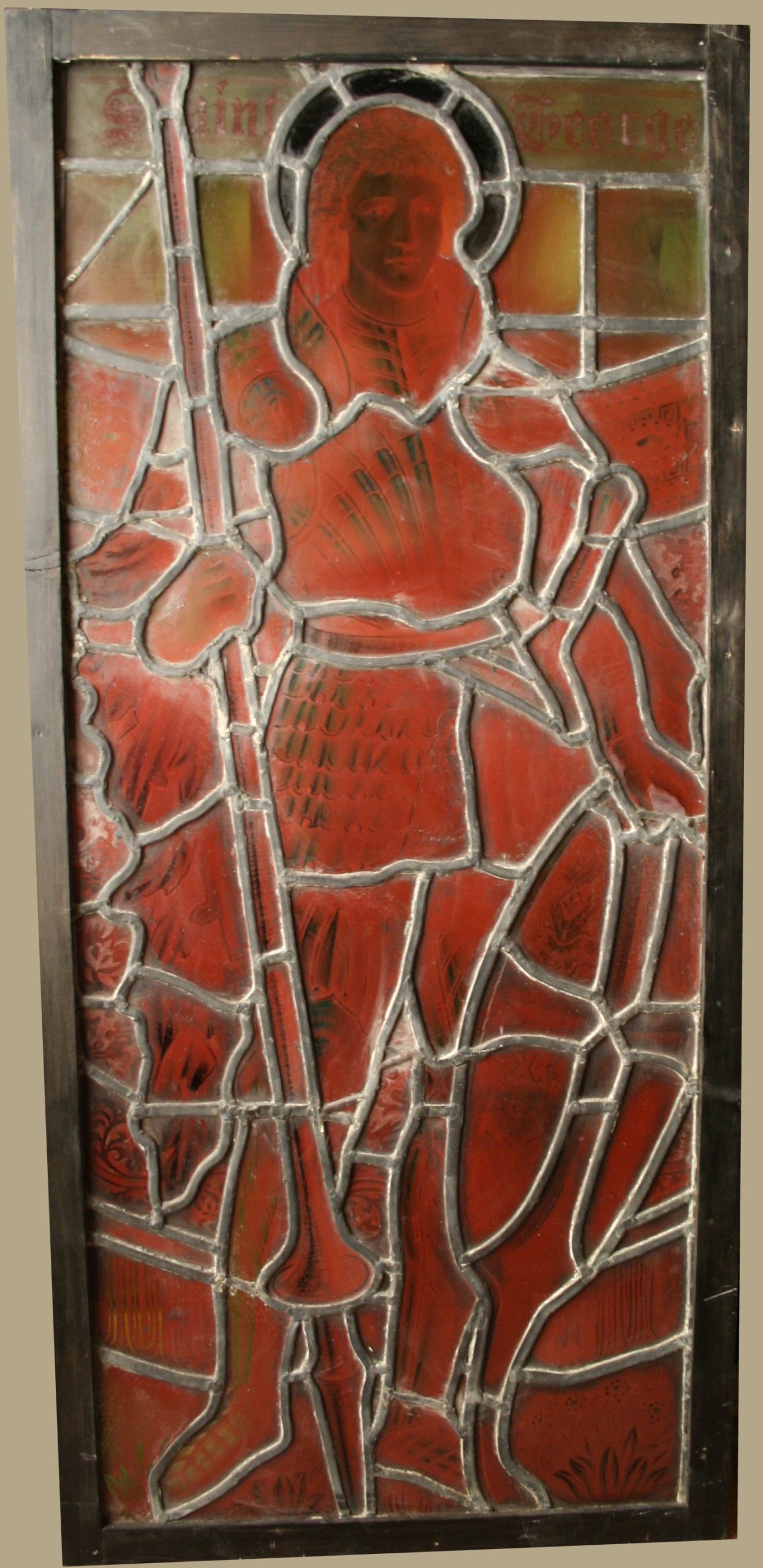 Ref: Rel308 – Antique Religious Church Stained Glass Window – “St George”