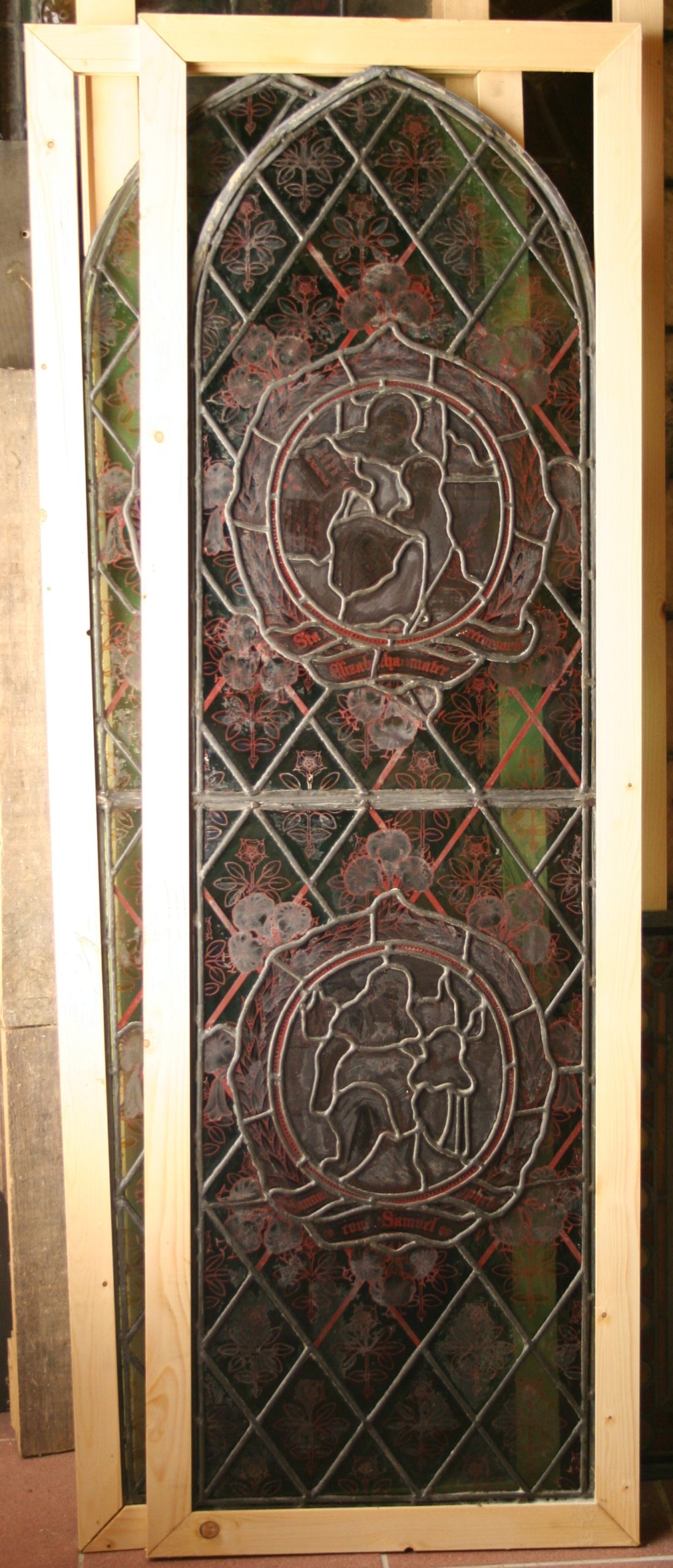 Ref: Rel319 – 2 Antique Religious Church Stained Glass Windows – “Lancet Windows”