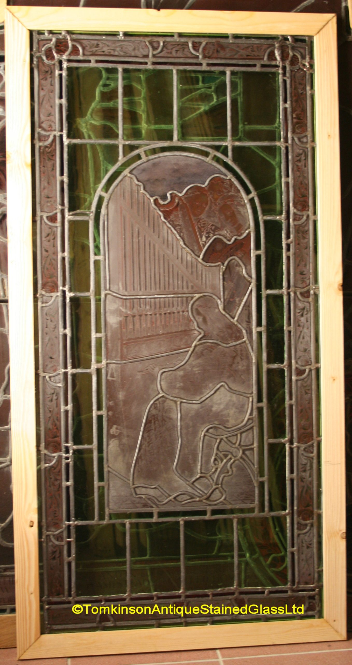 Ref: Rel362 – Antique Religious Church Stained Glass Window – Saint Cecilia