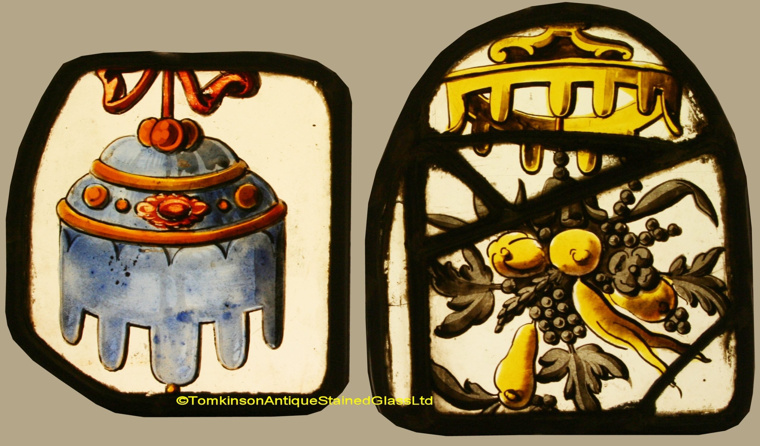 Ref: Ron443 – Roundels – 2 Antique Stained Glass Panels – 16th Century Fragments