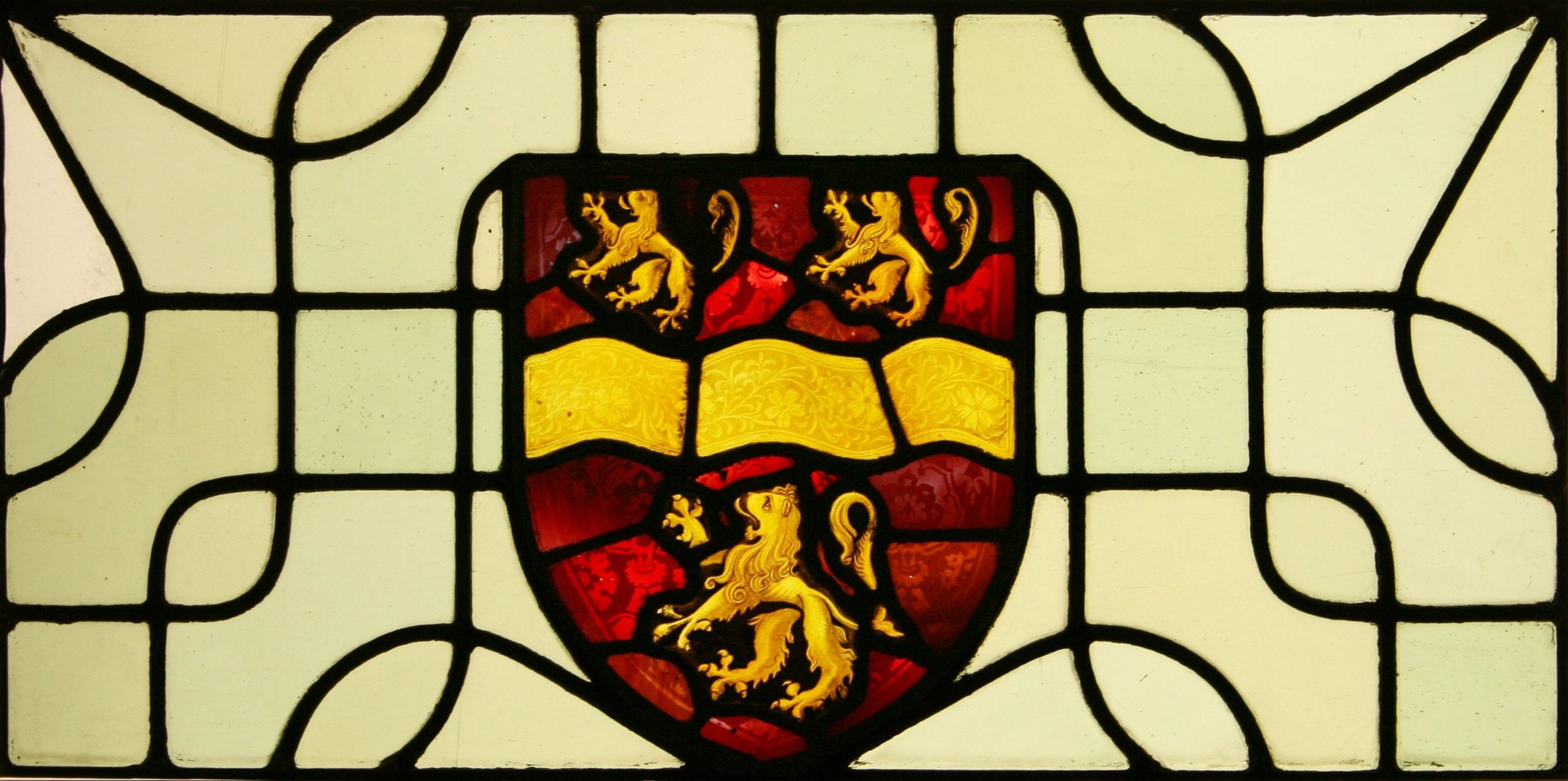 Ref: Vic488 – 2 Antique Victorian Stained Glass Windows – “Heraldic – Coat of Arms – Armorial”