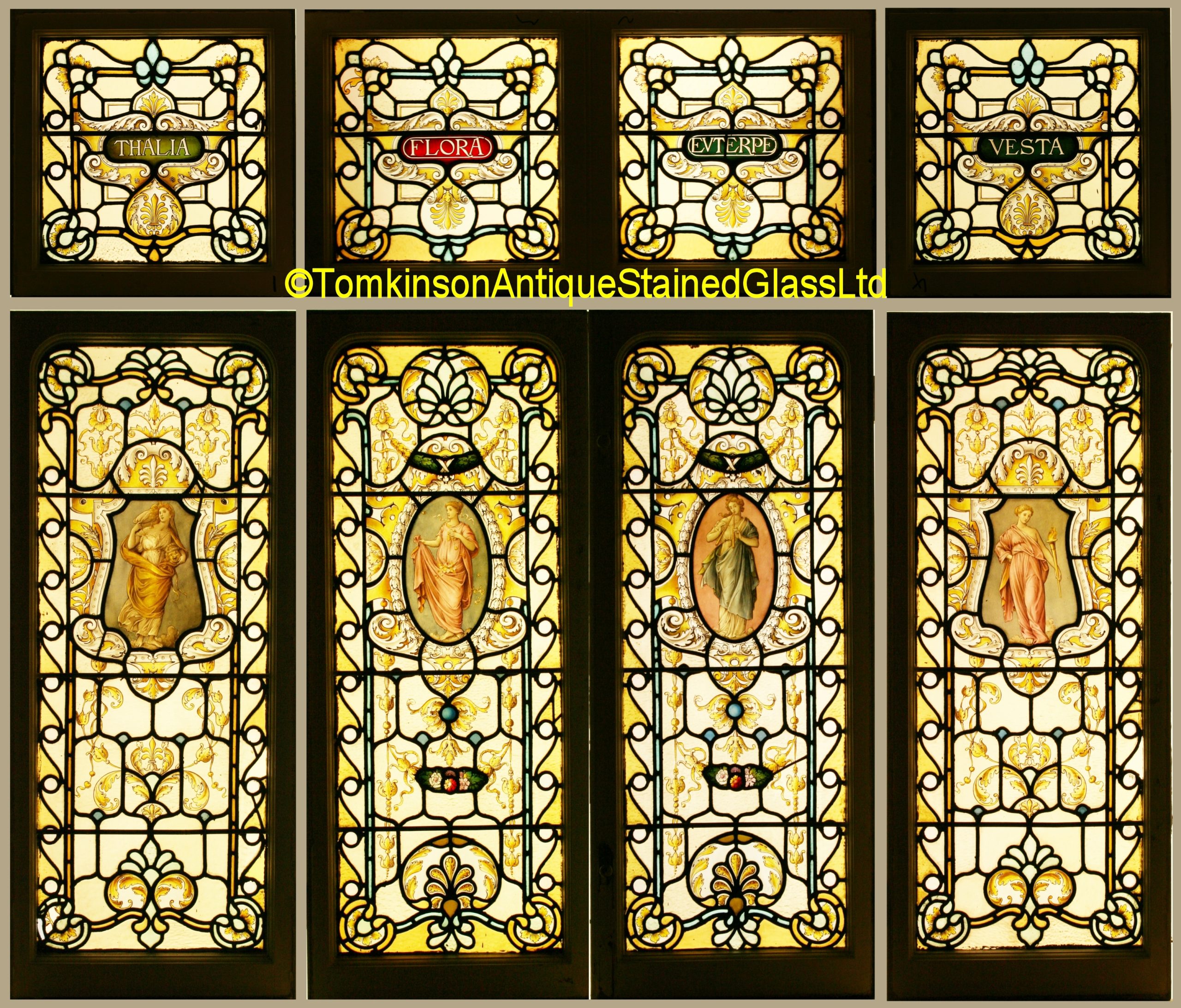 Ref: Vic538 – Set of Victorian Stained Glass Windows – Vesta – Flora – Euterpe – Thalia