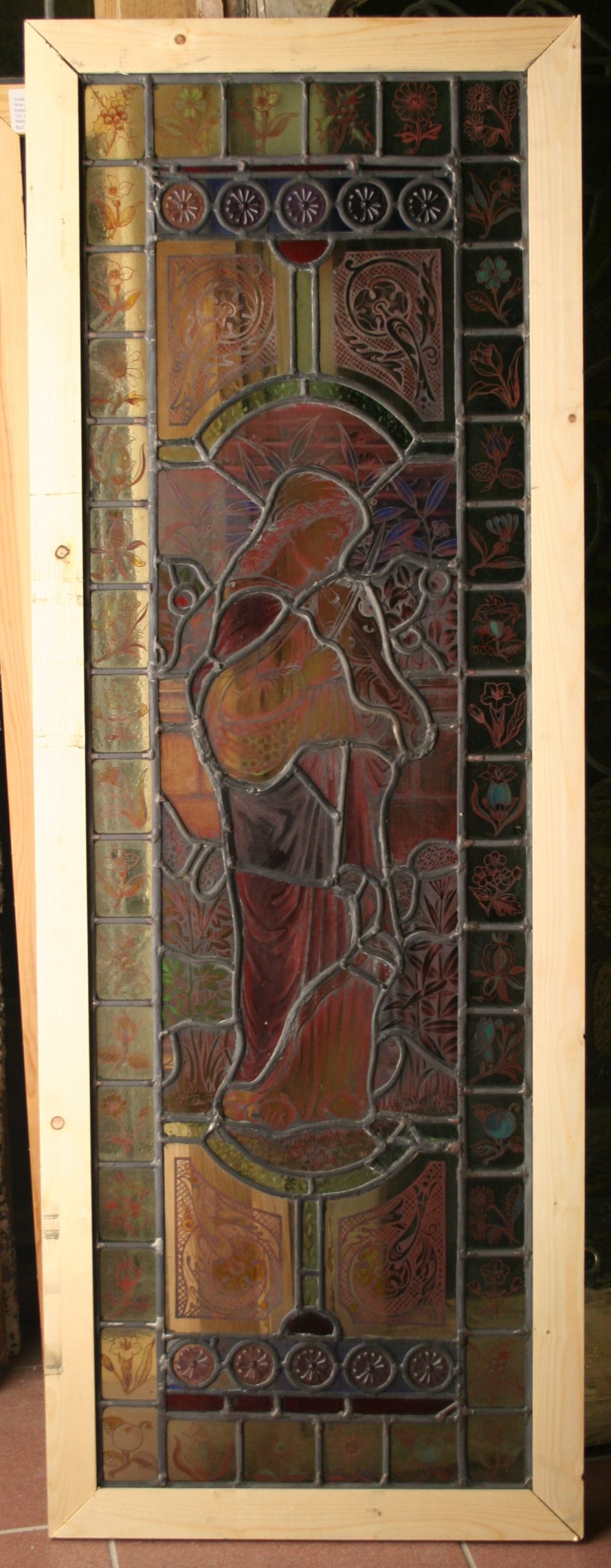 Ref: Vic554 – Victorian Stained Glass Window – Pre-Raphaelite Classical Maiden