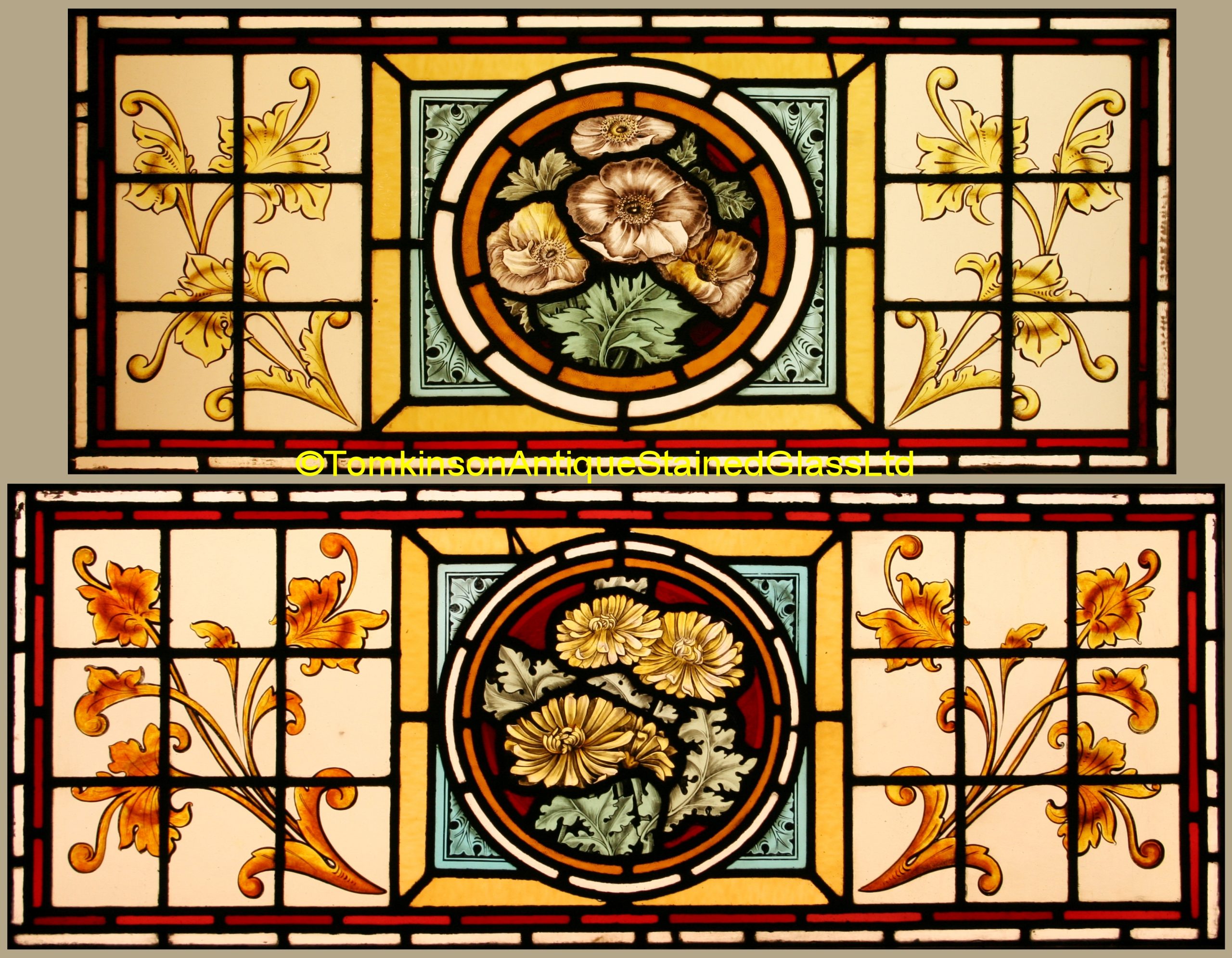 Ref: Vic592 – 2 Victorian Stained Glass Windows – Poppies & Chrysanthemums