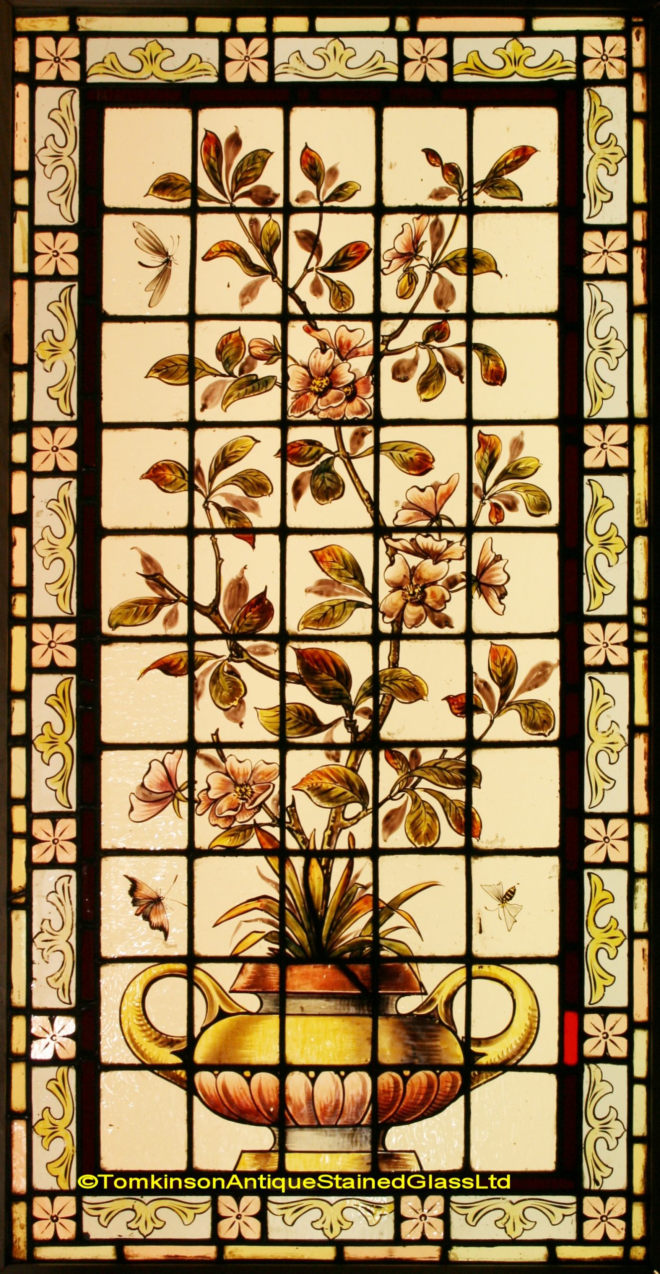 Ref: Vic594 – Victorian Stained Glass Window – Urn of Flowers