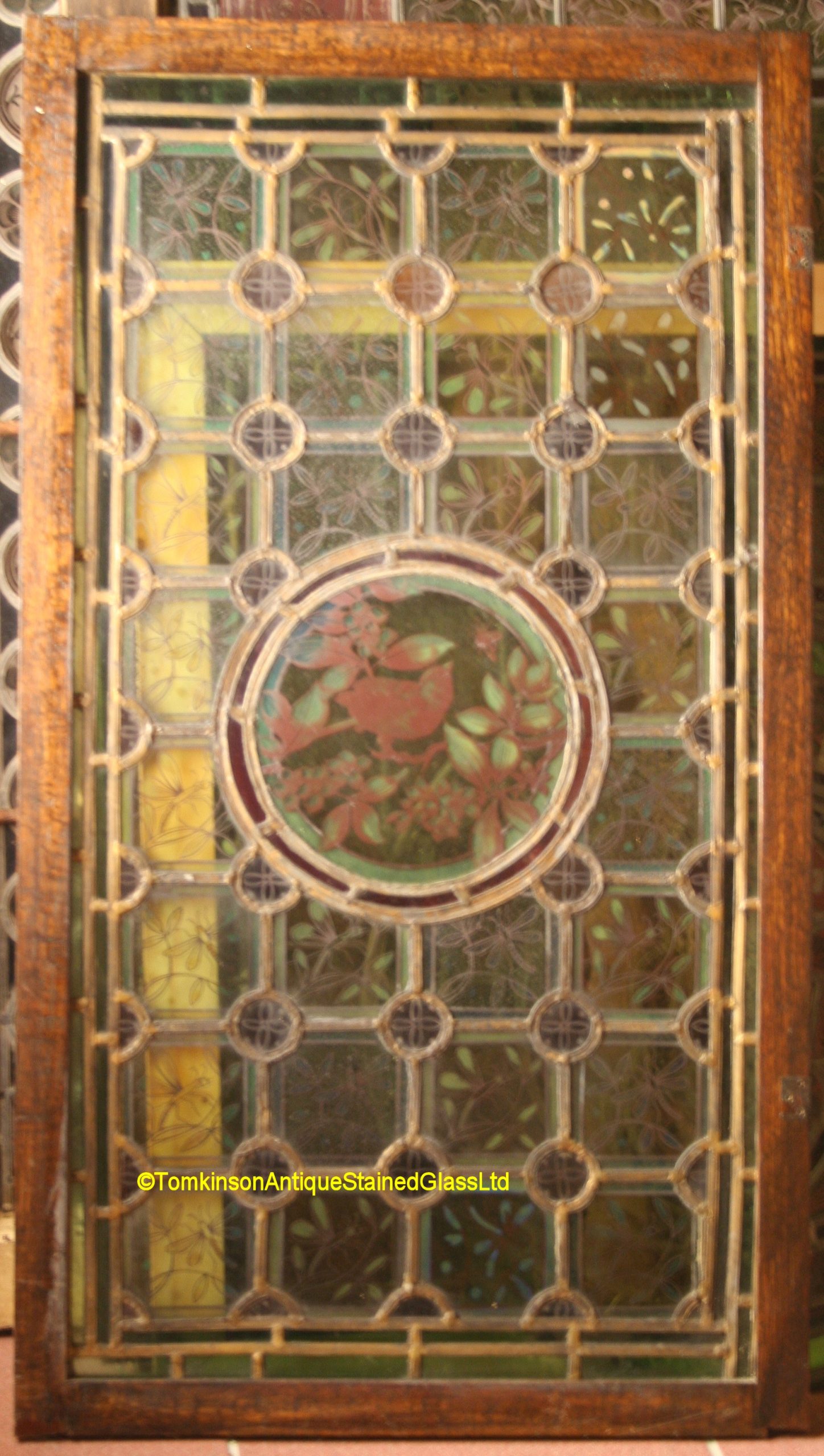 Ref: Vic613 – Victorian Stained Glass Window – Bird & Dragonflies