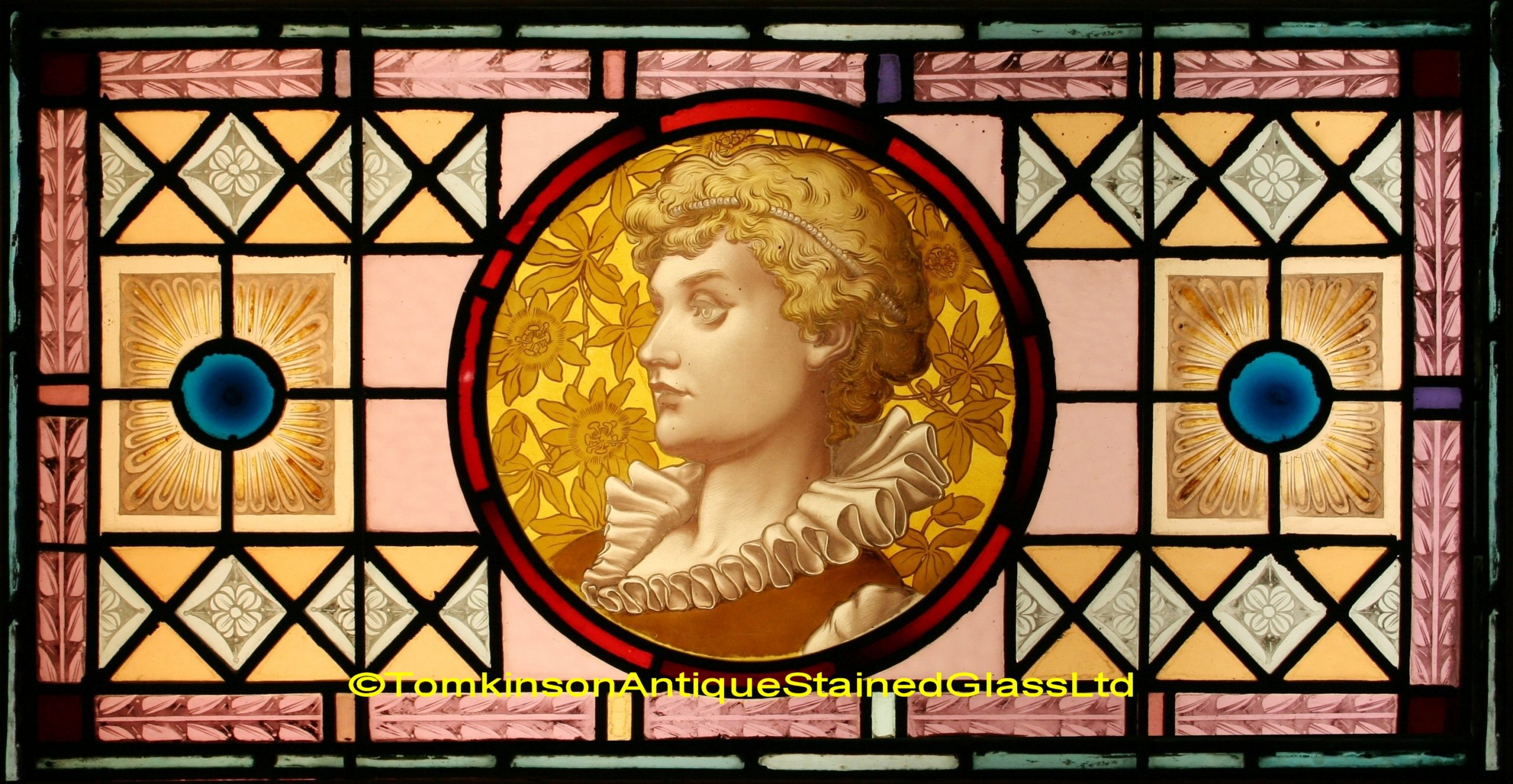 Ref: Vic664 – Victorian Stained Glass Window – Pre-Raphaelite Maiden
